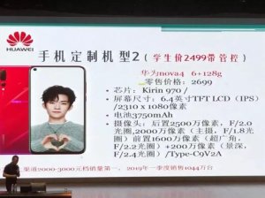 根据现场的PPT来看,校方与华为合作定制的学生机不止一款,包括华为nova 4在内的部分机型均有定制版本。在硬件参数上与普通版的华为nova 4手机没有太大区别,处理器均为麒麟970,其中6GB+128GB版学生价为2499元,比市场零售价便宜200元。