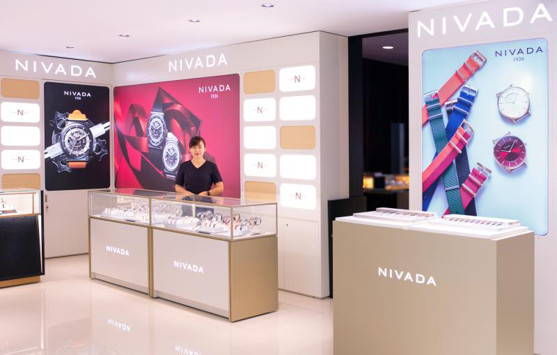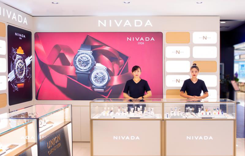 NIVADA尼维达哈尔滨新一百全新形象店位于新一百一楼瑞士品牌腕表区域,融合商场时尚的购物环境,将全新形象设计理念得以延续,为消费者提供更丰富的表款展示,提供更舒适的购物体验。
