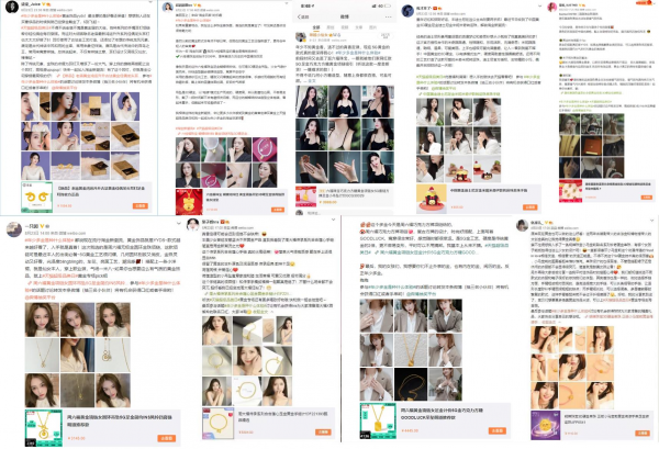 主力聚焦微博、小红书两大渠道,精准触达目标用户。联手新闻媒体通过原生真实内容拉近用户与黄金的距离,引发用户发现身边的黄金潮流趋势。而后,顺势发起#年少多金是种什么体验#话题,引起网友对穿戴黄金的话题讨论,并同时展开多维度的内容种草,进一步带出5G、古法、珐琅、3D四大黄金新工艺的趋势升级点,强势种草黄金首饰单品,将关注与流量导流回站内,形成闭环式传播。